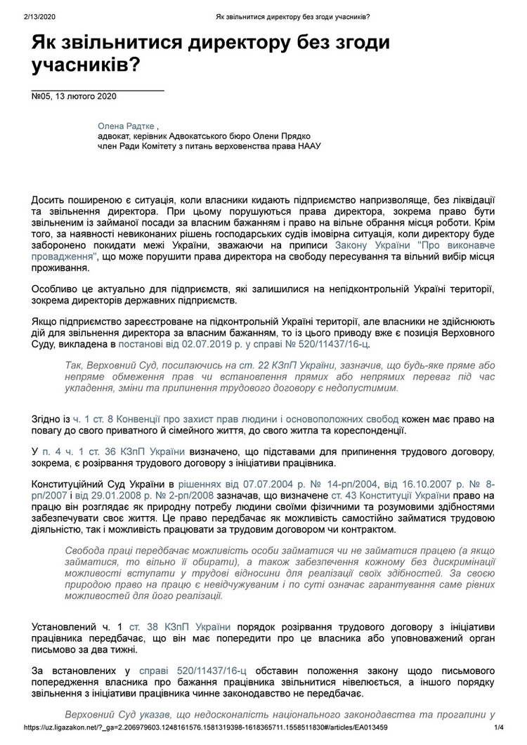 Якщо підприємство зареєстроване на підконтрольній Україні території, але власники не здійснюють дій по звільненню директора за власним бажанням, то з цього приводу вже є позиція Верховного Суду, викладена в Постанові від 02.07.2019 у справі № 520/11437/16-ц.