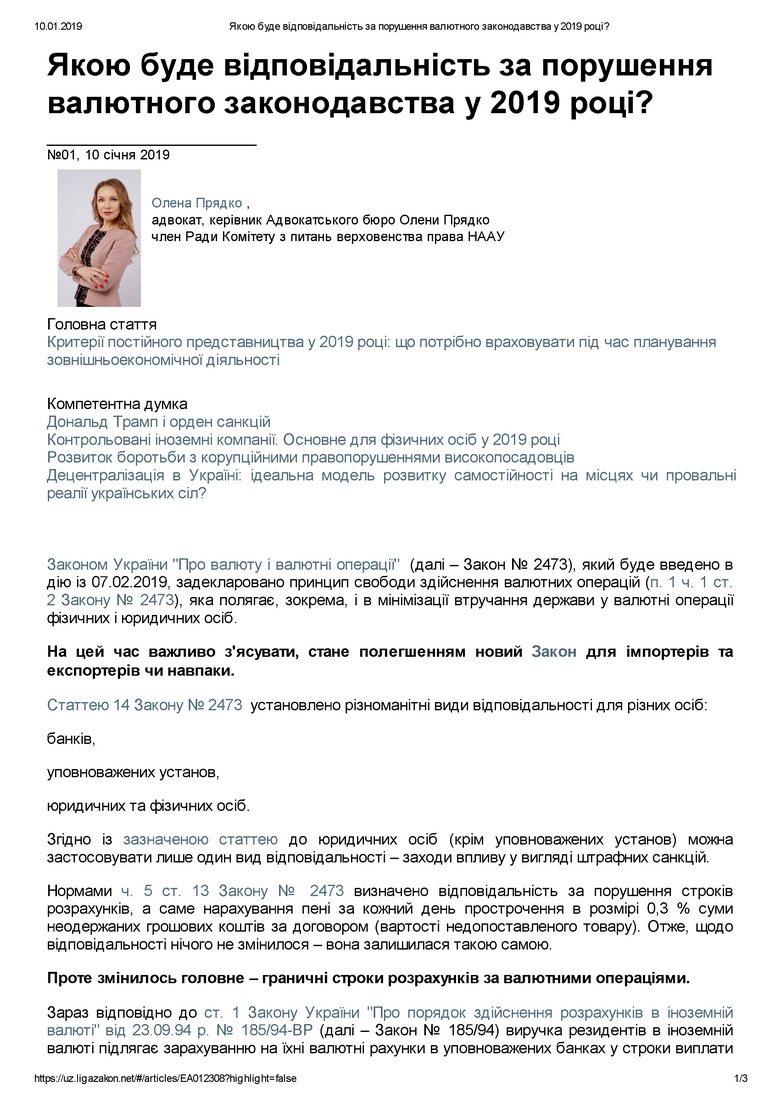 Законом України «Про валюту і валютні операції» (надалі - Закон 2473), який буде введено в дію з 07.02.2019 року, задекларовано принцип свободи здійснення валютних операцій (п.1 ч.1 ст.2 Закону 2473), яка полягає в тому числі в мінімізації втручання держави у валютні операції фізичних і юридичних осіб.