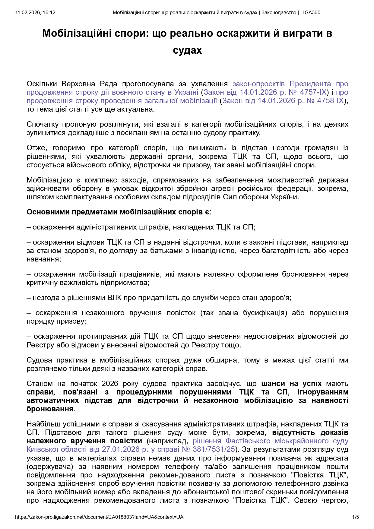 Судова практика в мобілізаційних спорах дуже обширна, тому в рамках цієї статті ми подивимось тільки на деякі з названих категорій справ.