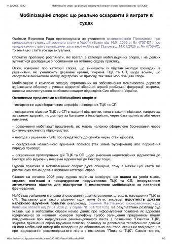 Судова практика в мобілізаційних спорах дуже обширна, тому в рамках цієї статті ми подивимось тільки на деякі з названих категорій справ.