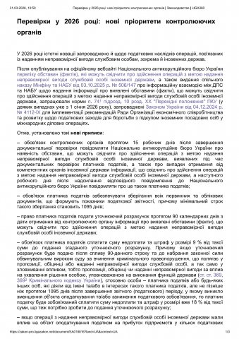 Після опублікування на офіційному веб-сайті Національного антикорупційного бюро України переліку обставин (фактів), які можуть свідчити про здійснення операцій з метою надання неправомірної вигоди службовій особі іноземної держави, а також прийняття спільного наказу Мінфіну та НАБУ від 03.10.2025 № 506/147 щодо інформаційної взаємодії між ДПС та НАБУ щодо надання інформації про виявлені обставини (факти), що можуть свідчити про здійснення операцій з метою надання неправомірної вигоди службовій особі іноземної держави, набули чинності норми п. 74-1 підрозд. 10 розд. ХХ «Перехідні положення» ПКУ (в деяких випадках вже із 1 січня 2026 року), прийняті Законом України від 04.12.2024 № 4112-ІХ, з метою імплементації рекомендацій Ради Організації економічного співробітництва та розвитку щодо податкових заходів для боротьби з підкупом іноземних посадових осіб у міжнародних ділових операціях, якими встановлено: